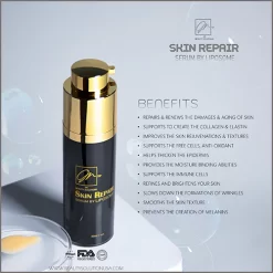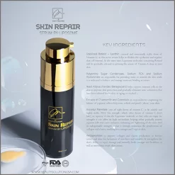 JN Beauty Solutions™ Skin Repair Serum is an advanced repair treatment designed to combat multiple skin concerns, from damage caused by chemical exposure and environmental stressors to visible signs of aging. This serum combines Stabilized Retinol, Vitamin C, Beta Glucans, Peptides, and Amino Acids in a Liposome Encapsulation System for deep penetration and prolonged action, rebuilding the skin from within.